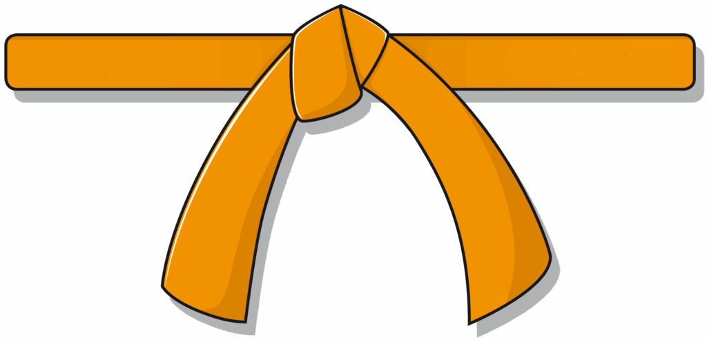 As the sun rises to bring light, the orange belt symbolises the beginning of enlightenment. Students at this level start to understand how techniques connect and begin developing coordination and balance.